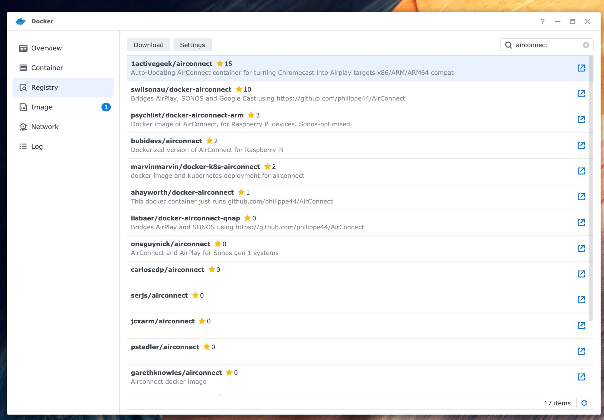Heb je een Synology en gebruik je niet graag de command line? Installeer dan het Docker pakket en zoek airconnect bij images. Die van 1activegeek wordt het best onderhouden.