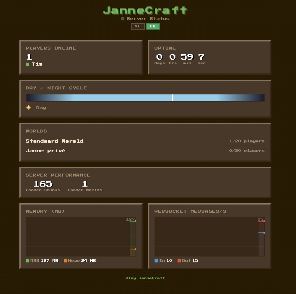 After that I put it in a Docker container and threw it on a cheap VPS, and now anyone can play JanneCraft: https://jannecraft.broddin.be/ . But, please keep it clean - there could be kids around.
