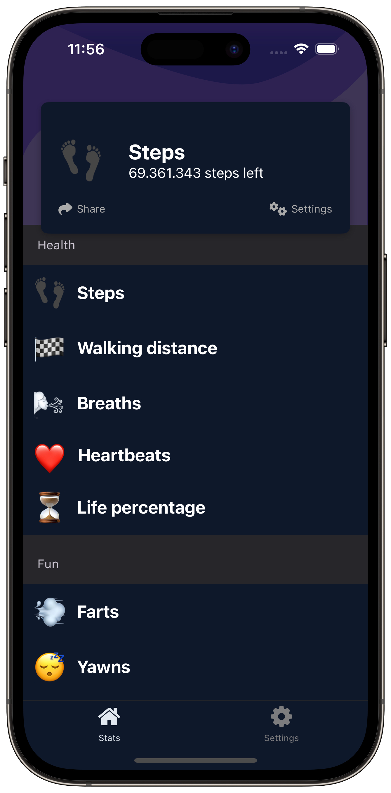 • There's now a lot more fun categories. Ever wondered how many bricks of LEGO you'll still step on in your lifetime? Or how many spiders you'll still eat in your sleep? Well, now you can.
