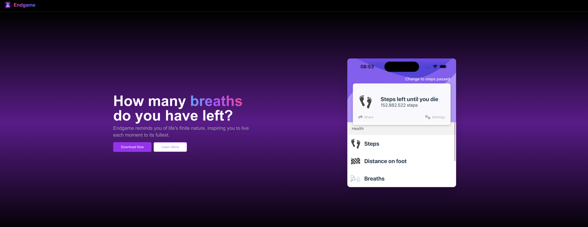 Oh, and I also created a landing page for the app. Since most domain names with endgame were already taken, I had to settle for endgame.now. It's a simple self-hosted Next.js website.