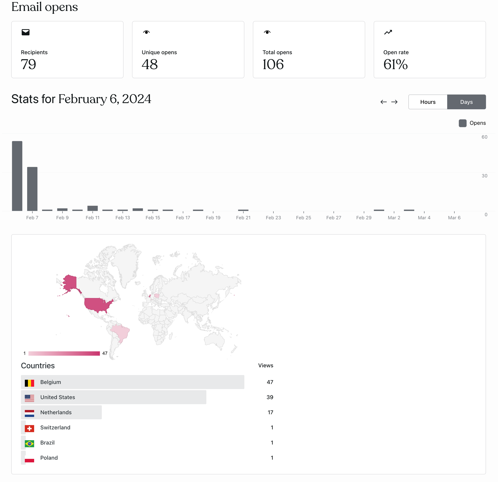 During my time with team Apex, we mostly worked on subscriber and subscription management. The two projects I'm most proud of myself are newsletter stats where we store a huge ton of data about sends, opens and clicks of newsletters and present them in a very clean way, and Apple Mapkit integration, which greatly reduced cost compared to the provider we were previously using.