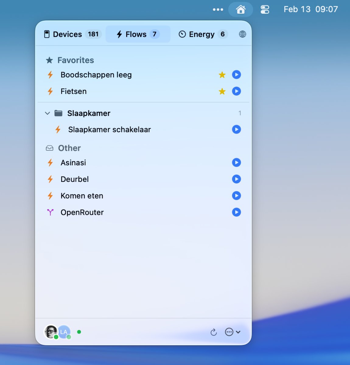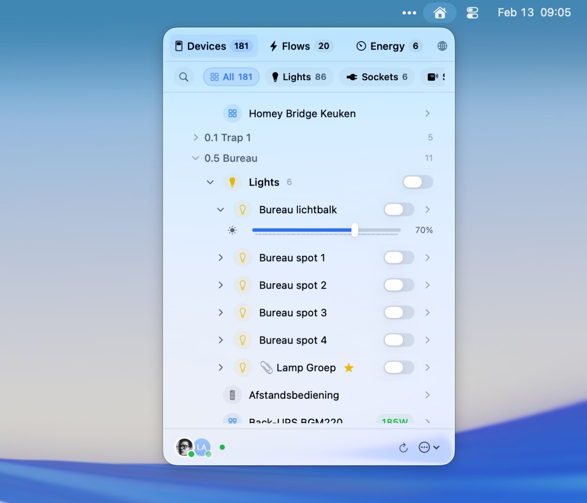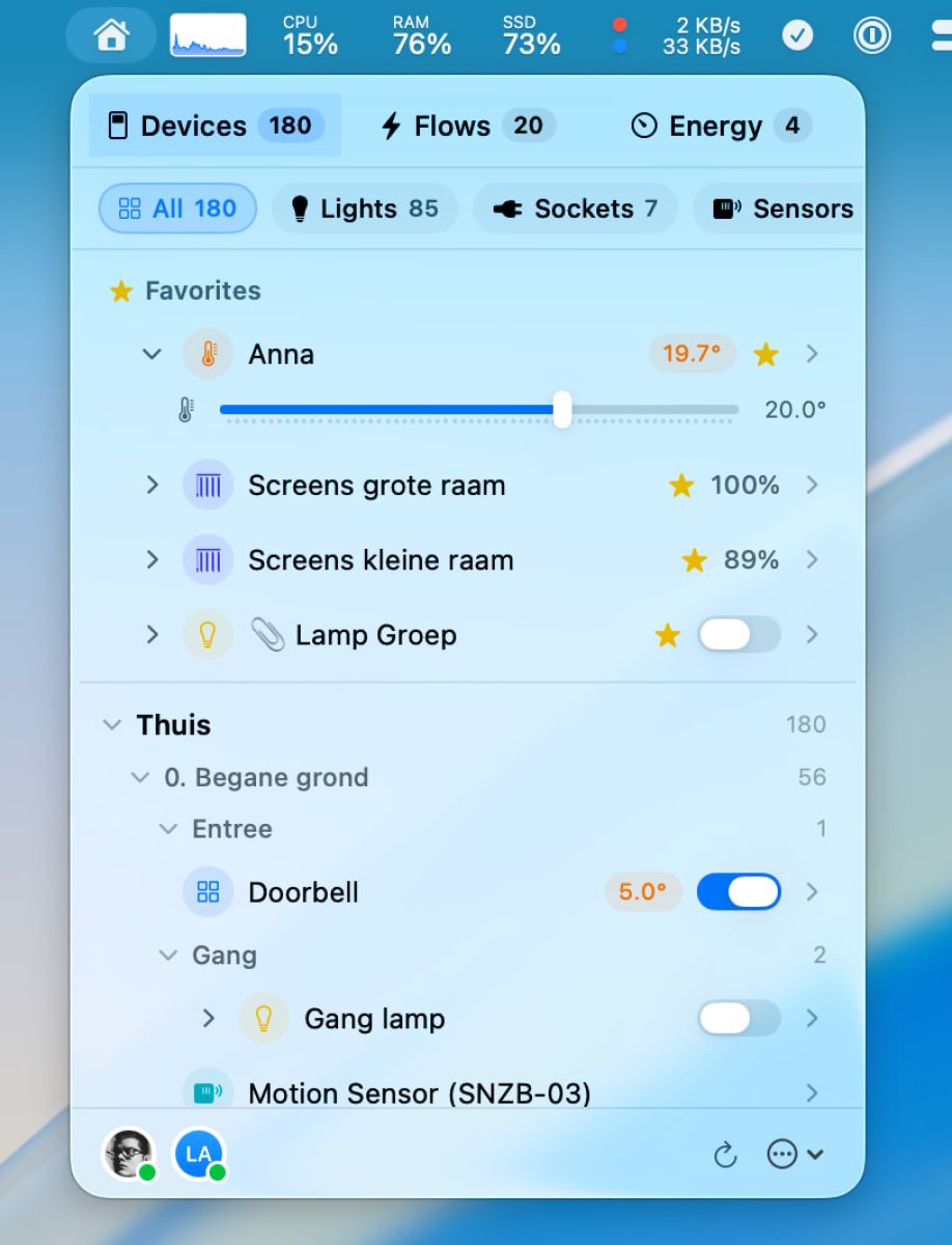 Since I’m currently in my "menubar apps era," I knew exactly what I wanted. I dug into the Homey Web API (which is super well-maintained) and hacked together a prototype.