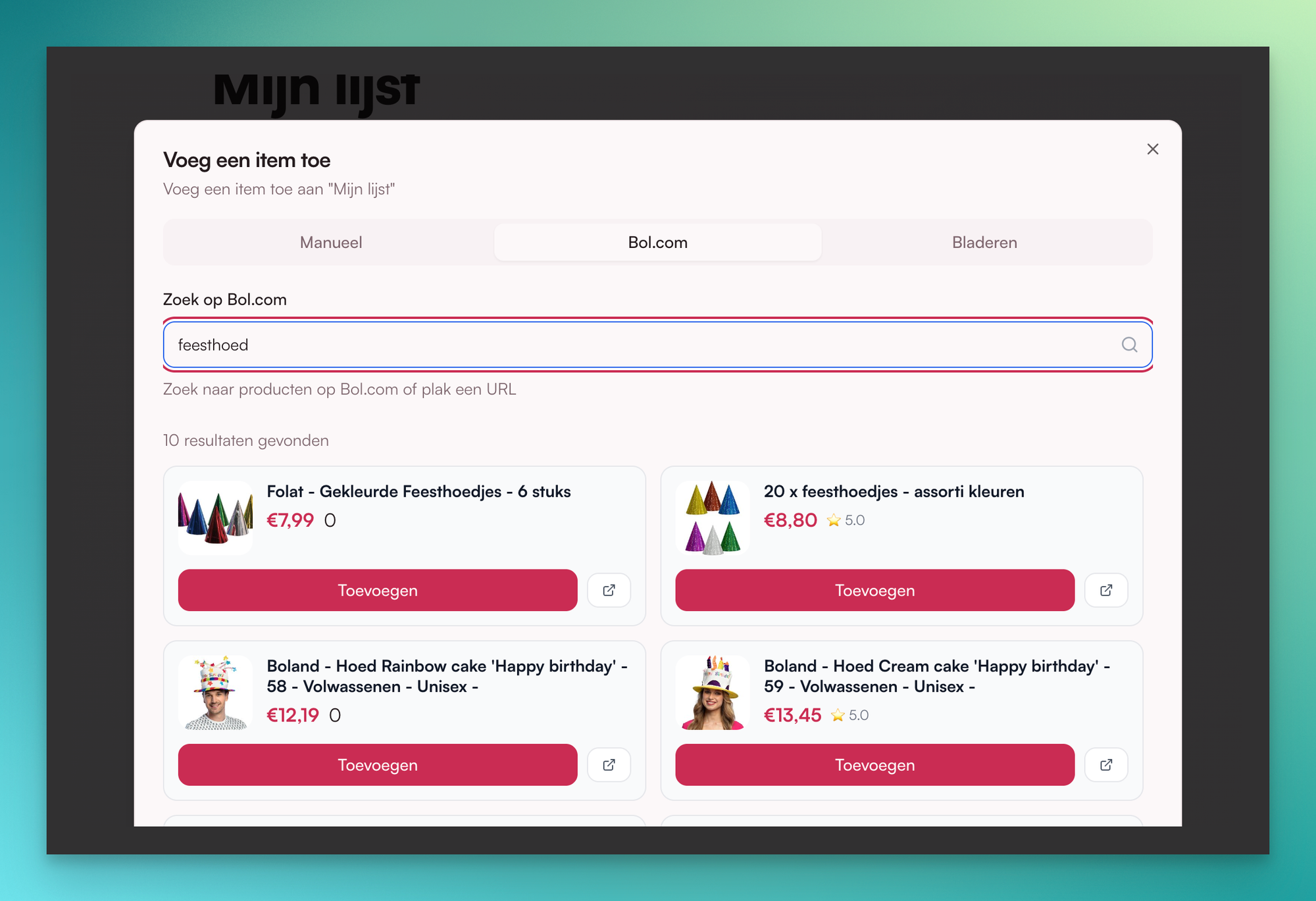 So now you can search all of Bol.com directly inside Lijsje.