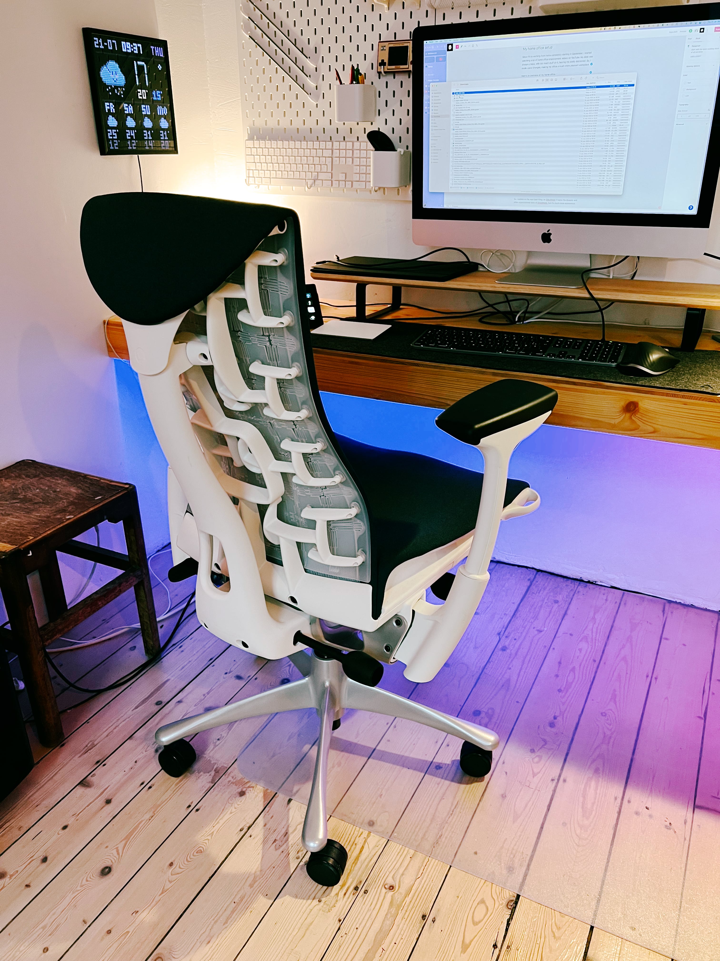 The first few days were hard, it really took some time to get used to. On my old chair, I couldn’t sit still, my legs were always all over the place. The Embody really forces you to have good posture. After a few days, however, I started loving it.