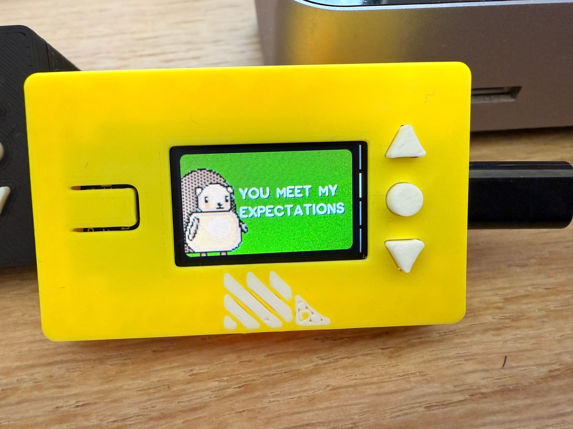 DeskHog is a tiny computer terminal that sits on your desk. It can show you information cards and even play games like Flappy Bird and Pong. It runs on an ESP32-S3 — a dual-core microcontroller — and features an LCD screen about the size of a postage stamp, along with four physical buttons.