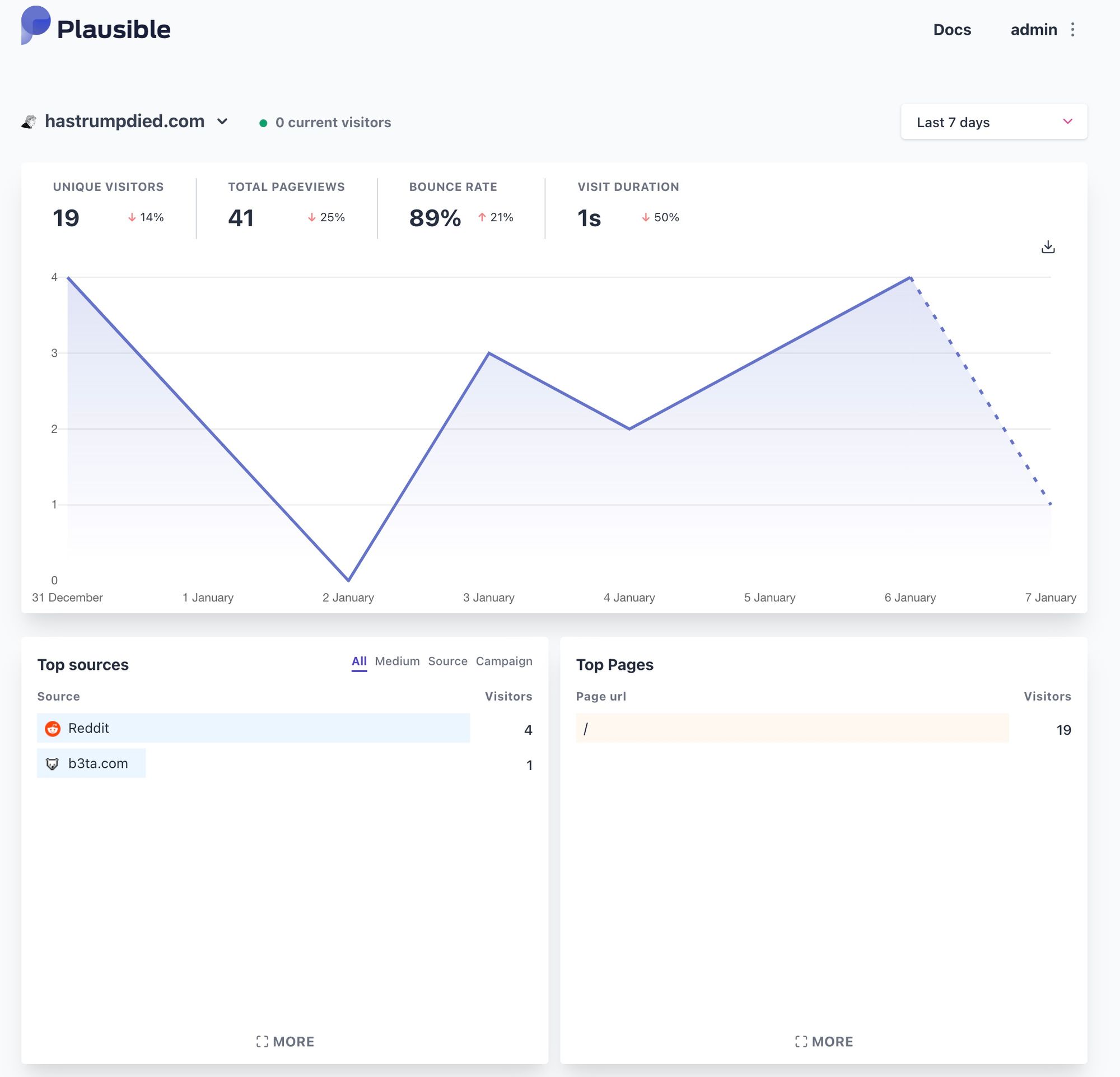Net zoals bij Fathom staat privacy bij Plausible op de eerste plaats. Ze zetten geen cookies, beloven ook plechtig geen data te verkopen en zijn daarnaast volledig open-source.